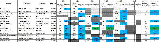 Nella presente relazione i dati si riferiscono ai soli torrenti e corpi idrici monitorati negli anni 2010, 2011, 2012, 2013 e 2014.